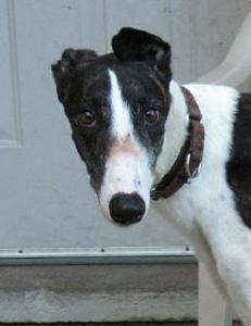 Edison just arrived from the Daytona Race Track because his kennel closed. He only raced there for a little while and raced most of his 67 races at other tracks, Sanford Orlando, Mardi Gras, Derby Lane and Dubuque. He traveled around a bit in his short career. Edison raced at 74 lbs so he is a mid-sized male. His sire is Bob's Skeet and his dam is Elsie Bones. He turned 3 on January 29th. He is calm and submissive, but very friendly, going up to most people for love. Edison passed his cat and small dog tests so should be OK to live with either. He is being fostered in a home with both. His trainer brought her young boys into the kennel so all the dogs are used to being around kids. More as we get to know him.