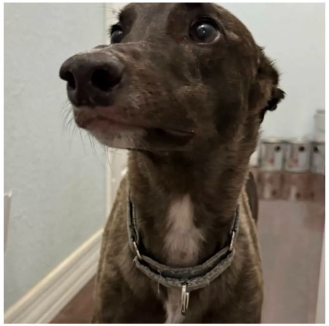 Marshall is arriving soon. He is an Australian guy that never raced. He was born on January 6th of 2024 so is just 2 years old. He is a beautiful dark almost brown and black brindle and is one of the tiniest males we have placed at only 57lbs. His foster family calls him Marshall because like a US Marshall he investigates everything. He is sweet and curious and likes older kids, other large dogs, being outside and running around. He doesn't like other dogs to bother him when eating. His foster home is working on that. Marshall also doesn't like sudden loud noises. Marshall should be small animal workable with close supervision. He is just very curious about everything he sees including cats and small dogs. More when we meet him. |