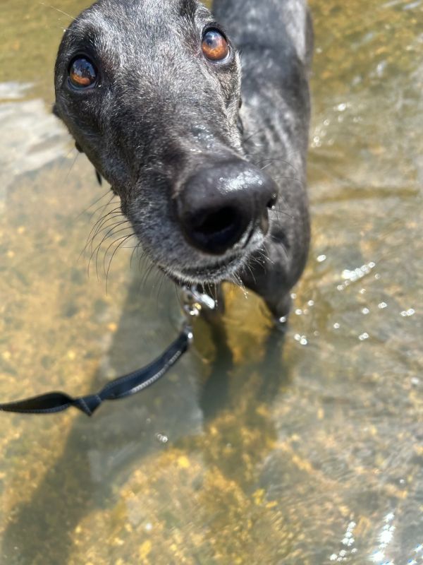 Gazer just arrived from Australia. He only has two races listed at Grafton and Casino and he placed 7th and 8th. He is a handsome, black male that raced at 71lbs. His DOB is 4/25/21 so is just turning 3 years old. Gazer's sire is Ace Hi Rumble and his dam is Lucille Rumble. He is tattooed in his left ear NKCHX and is microchipped. He was neutered, had his dental and all his shots in Australia before being transported to the US. This is the description we received from his previous owner: This guy is the perfect example of the cruisy greyhound. He likes to play for a little while, but then it is nap time. His favorite pastime is food tasting. Gazer has a great attitude towards life and lives it to the fullest. He is a very happy boy and loves being with his people. He is good with the Italian Greyhound he met. Cats roam the property and although most of the dogs don't interact with them, they can observe them and don't get excited when they do see them. Children interact with regularly (8 and up). Children can lead him around and he will not pull on the lead. Gazer just wants to get in the car and settles quickly and travels well. He is crate trained and is happy to sit in his crate and watch his people while they work. Gazer has been a great boy since he arrived. He absolutely loves the kids he saw ages 4 to 9. He is so friendly and happy and great on leash. He has been quiet in his crate. Gazer has been living with small dogs in his foster home. He absolutely can not live with cats. He was very focused on the cat and didn't back away even when it slapped him. Gazer does travel very well. What a nice, friendly, happy guy! UPDATE! Kai has done really well in his adoptive home since last year, but recently had an unfortunate surprise encounter with an unexpected cat. He's demonstrated that even though time has passed, he is NOT a dog who can live peacefully with them either inside or out. Otherwise, he's a splendid, friendly, and well traveled dog just waiting for his new start with the perfect family! |